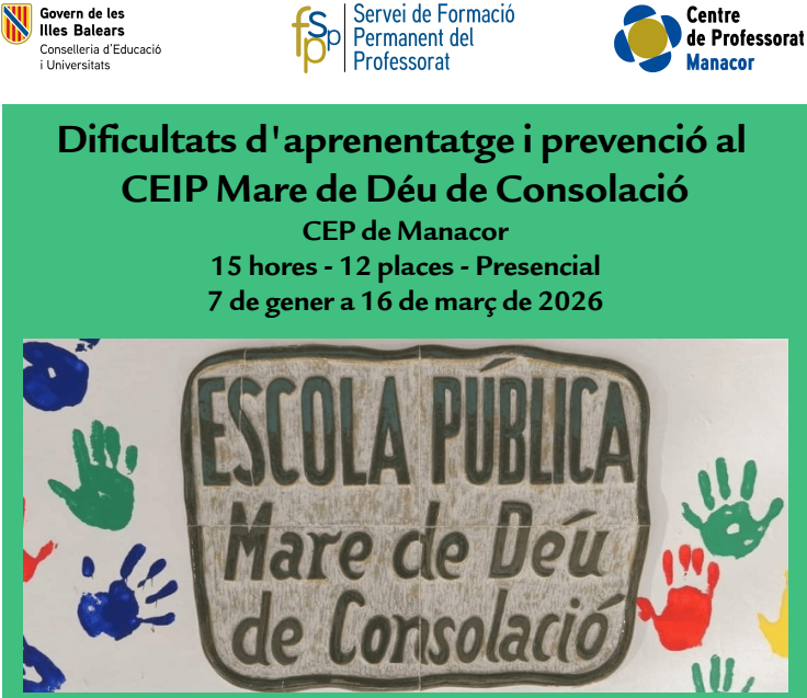 04/11/25Dimecres i dijous passats, 29 i 30 d’octubre, va tenir lloc la primera jornada de l’APS de Migjorn i Llevant per a centres de primer any. La jornada es va dur a terme al Santuari de Gràcia (al Puig de Randa) i vam poder comptar… Llegeix més»