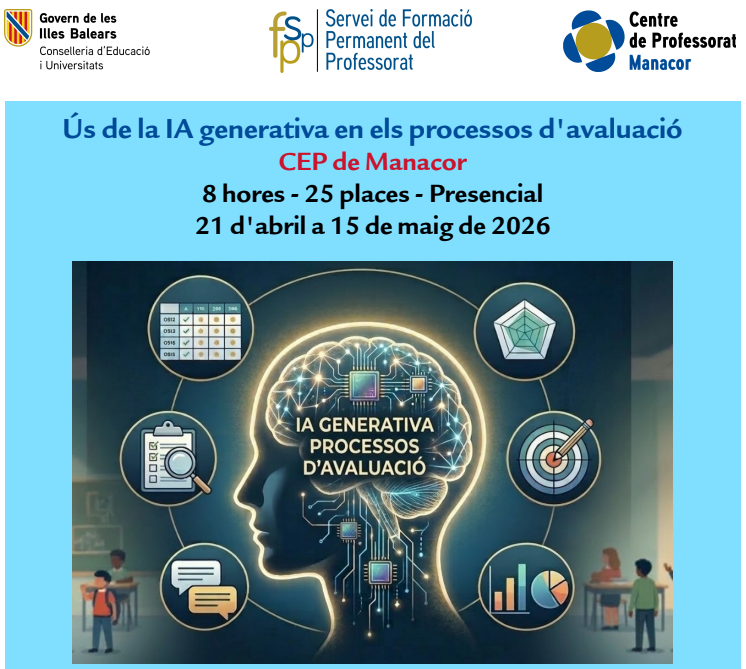 administrador wrote a new post, Ús de la IA generativa en els processos d'avaluació, on the site Centre de Professorat de Manacor fa 6 dies, 22 hores