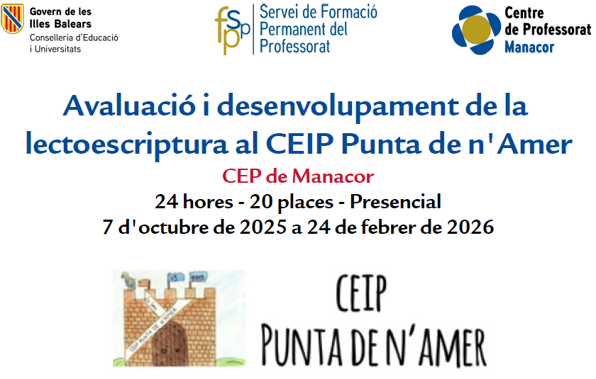 administrador wrote a new post, Avaluació i desenvolupament de la lectoescriptura al CEIP Punta de n'Amer, on the site Centre de Professorat de Manacor fa 1 setmana, 6 dies