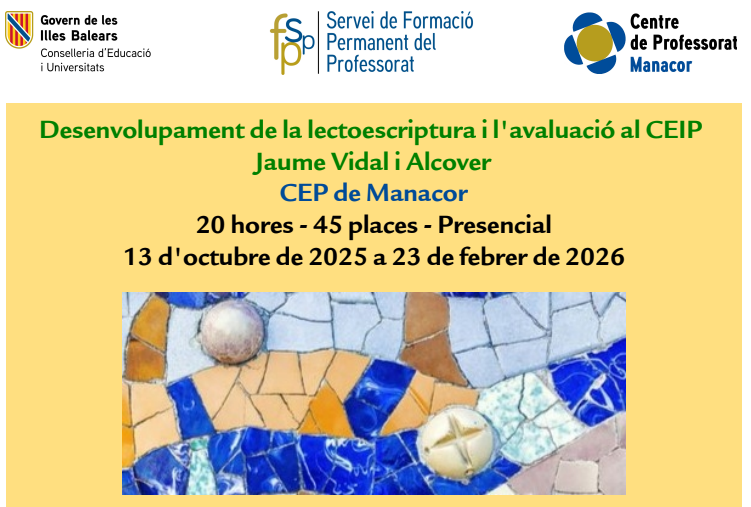 administrador wrote a new post, Desenvolupament de la lectoescriptura i l'avaluació al CEIP Jaume Vidal i Alcover, on the site Centre de Professorat de Manacor fa 4 dies, 3 hores