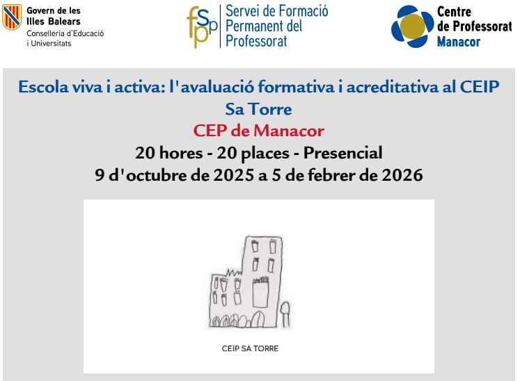 administrador wrote a new post, Escola viva i activa: l'avaluació formativa i acreditativa al CEIP Sa Torre, on the site Centre de Professorat de Manacor fa 1 setmana, 3 dies