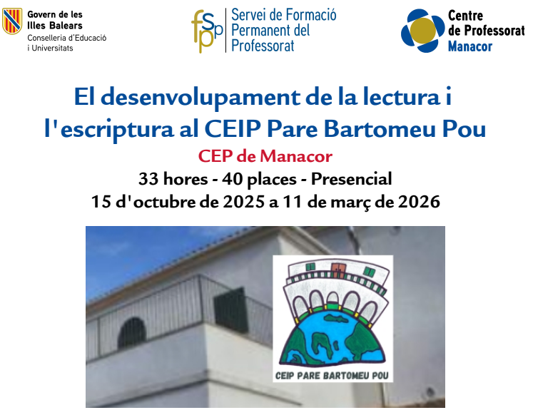 administrador wrote a new post, El desenvolupament de la lectura i l'escriptura al CEIP Pare Bartomeu Pou, on the site Centre de Professorat de Manacor fa 1 setmana
