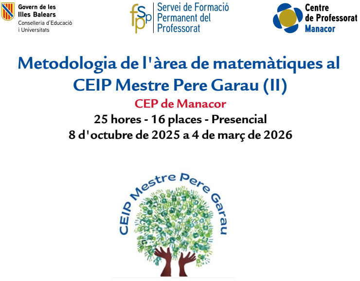 administrador wrote a new post, Metodologia de l'àrea de matemàtiques al CEIP Mestre Pere Garau (II), on the site Centre de Professorat de Manacor fa 1 setmana, 3 dies