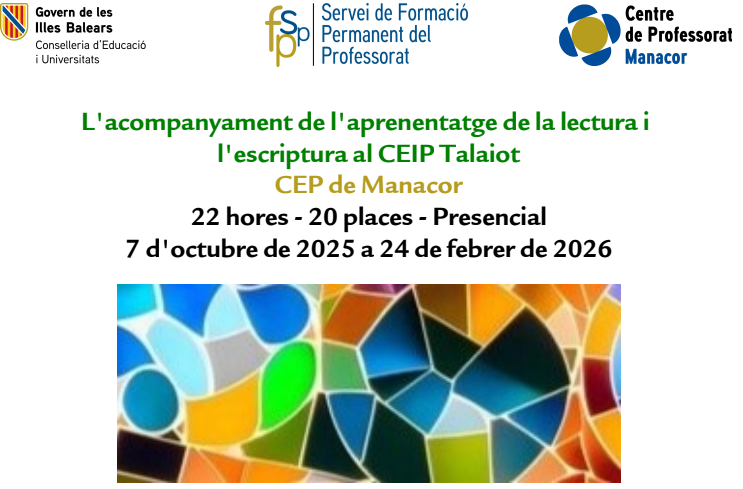 administrador wrote a new post, L'acompanyament de l'aprenentatge de la lectura i l'escriptura al CEIP Talaiot, on the site Centre de Professorat de Manacor fa 1 setmana, 3 dies
