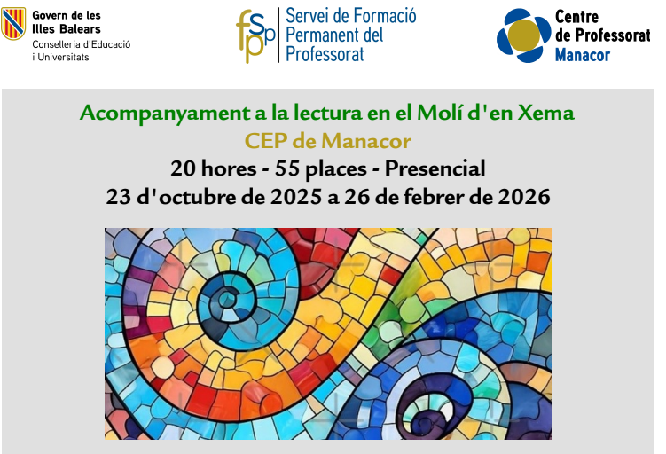 administrador wrote a new post, Acompanyament a la lectura en el Molí d'en Xema, on the site Centre de Professorat de Manacor fa 4 dies, 6 hores