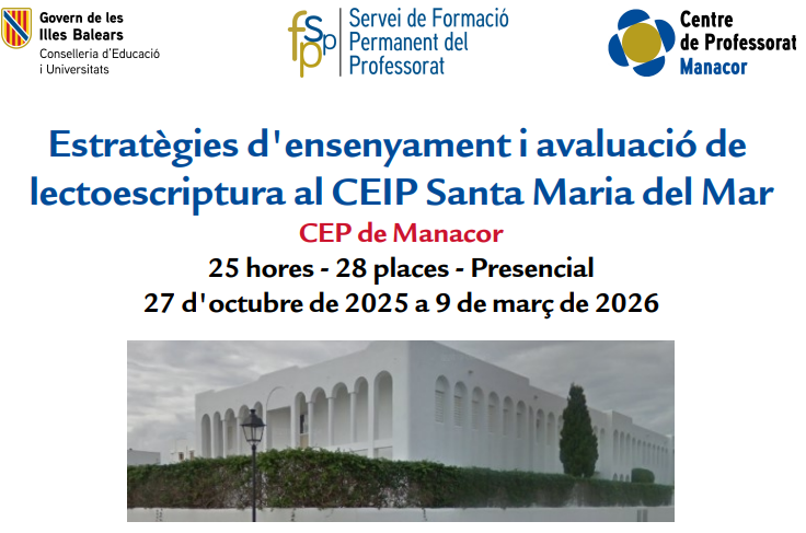 administrador wrote a new post, Estratègies d'ensenyament i avaluació de lectoescriptura al CEIP Santa Maria del Mar, on the site Centre de Professorat de Manacor fa 1 setmana