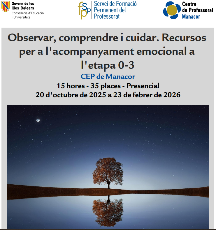 administrador wrote a new post, Observar, comprendre i cuidar. Recursos per a l'acompanyament emocional a l'etapa 0-3, on the site Centre de Professorat de Manacor fa 1 setmana