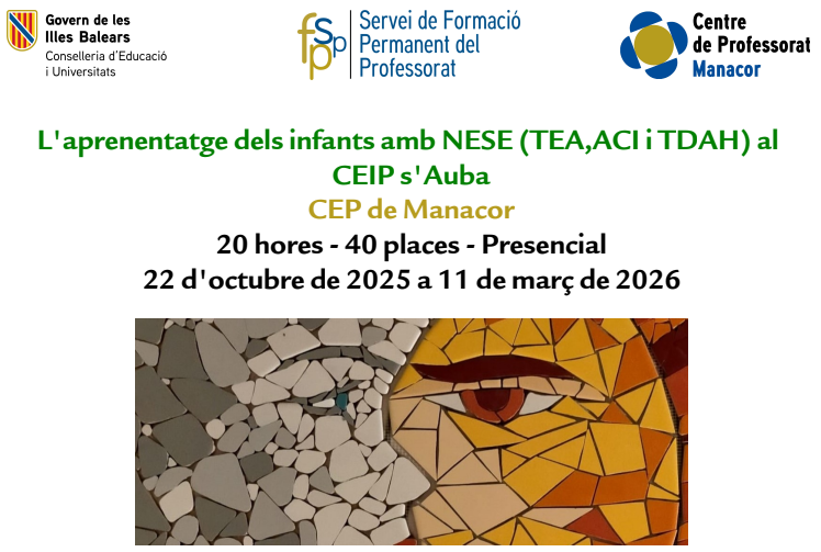 administrador wrote a new post, L'aprenentatge dels infants amb NESE (TEA,ACI i TDAH) al CEIP s'Auba, on the site Centre de Professorat de Manacor fa 4 dies, 6 hores