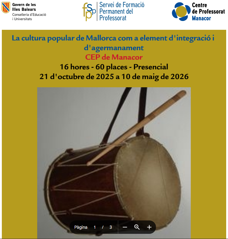 administrador wrote a new post, La cultura popular de Mallorca com a element d'integració i d'agermanament, on the site Centre de Professorat de Manacor fa 5 dies, 2 hores