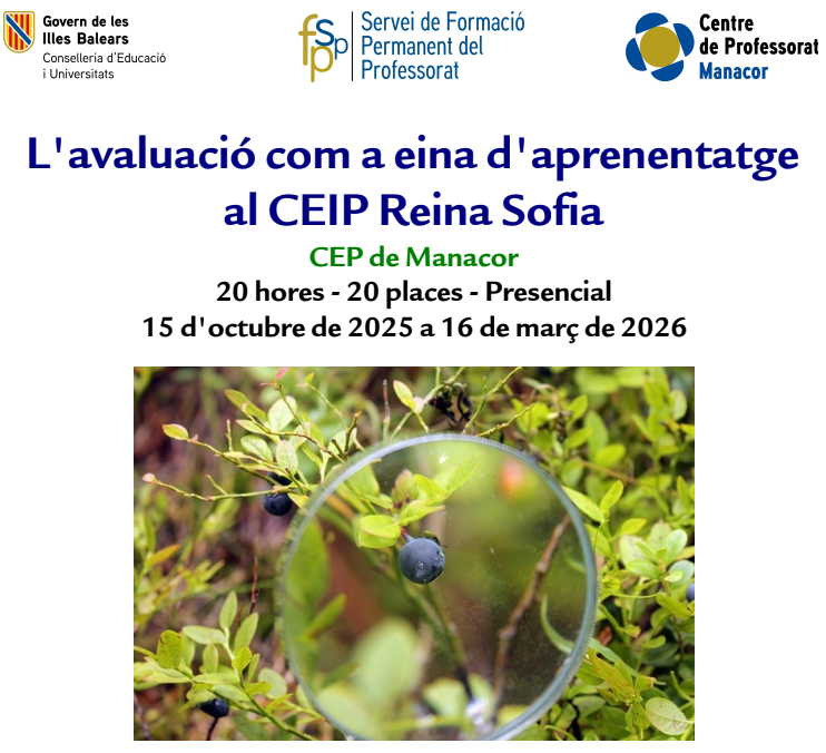 administrador wrote a new post, L'avaluació com a eina d'aprenentatge al CEIP Reina Sofia, on the site Centre de Professorat de Manacor fa 4 dies, 6 hores