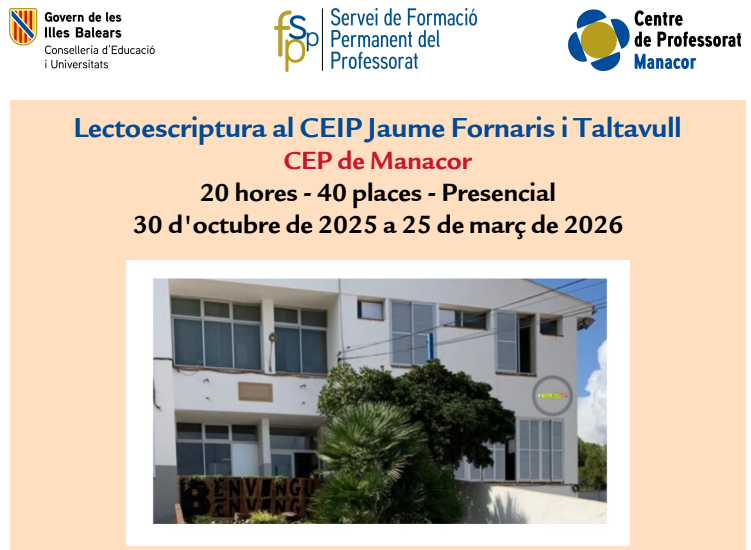 administrador wrote a new post, Lectoescriptura al CEIP Jaume Fornaris i Taltavull, on the site Centre de Professorat de Manacor fa 2 hores, 52 minuts